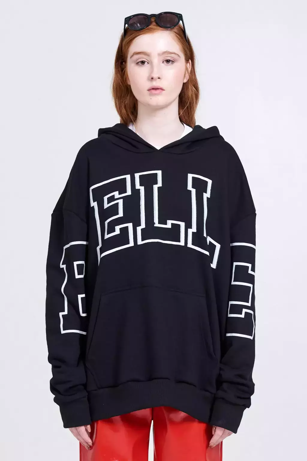 BUZO LARGO OVERSIZE C/ ESTAMPA EN FRENTE Y MANGAS, TELA RUSTICO