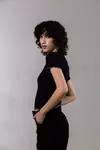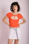 REMERA MANGA CORTA CROP CON CUELLITO EN MORLEY VISCOSA