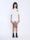 Una prenda que combina estilo y comodidad con su diseño crop y terminaciones al corte que marcan tendencia. Confeccionada en suave tela jersey de algodón, ofrece frescura y suavidad al tacto. Destaca su escote redondo clásico y una estampa central que le da un toque único y moderno.