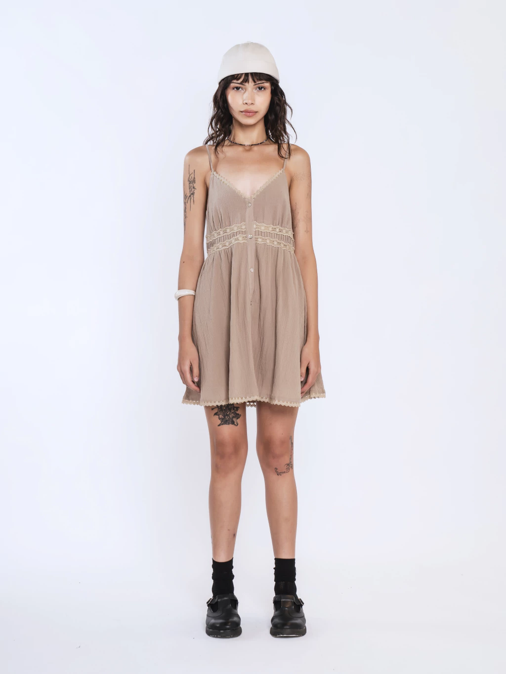 Un vestido corto de bretel confeccionado en lino que combina elegancia y frescura. Su tejido natural y liviano brinda una sensación fresca ideal para los días cálidos. Perfecto para quienes buscan un look sofisticado y cómodo, este vestido es la elección perfecta para cualquier ocasión.